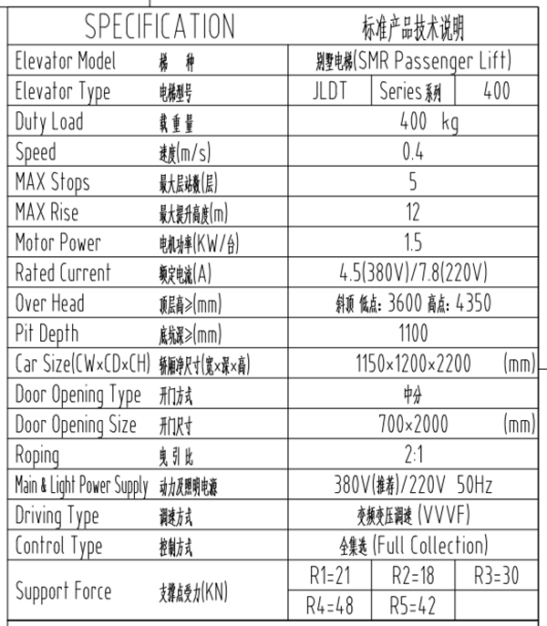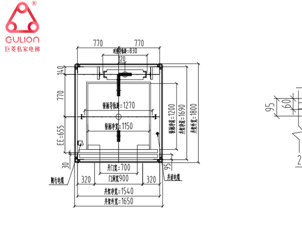 轎廂內(nèi)部空間:1150*1200*2200mm(寬*深*高)