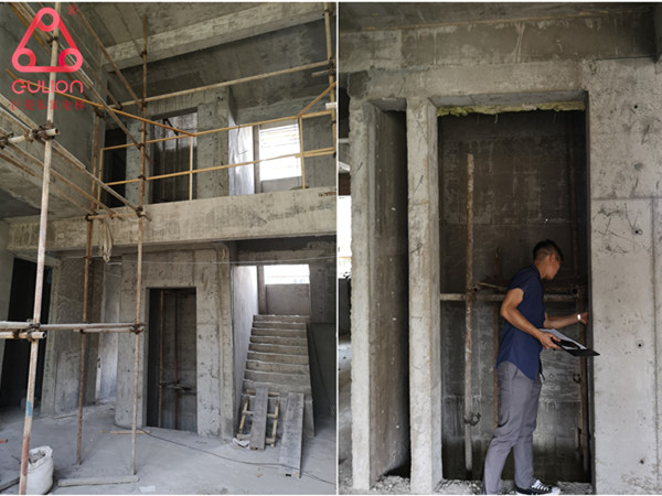 技術(shù)正在認(rèn)真復(fù)核無(wú)錫家用別墅電梯井道尺寸