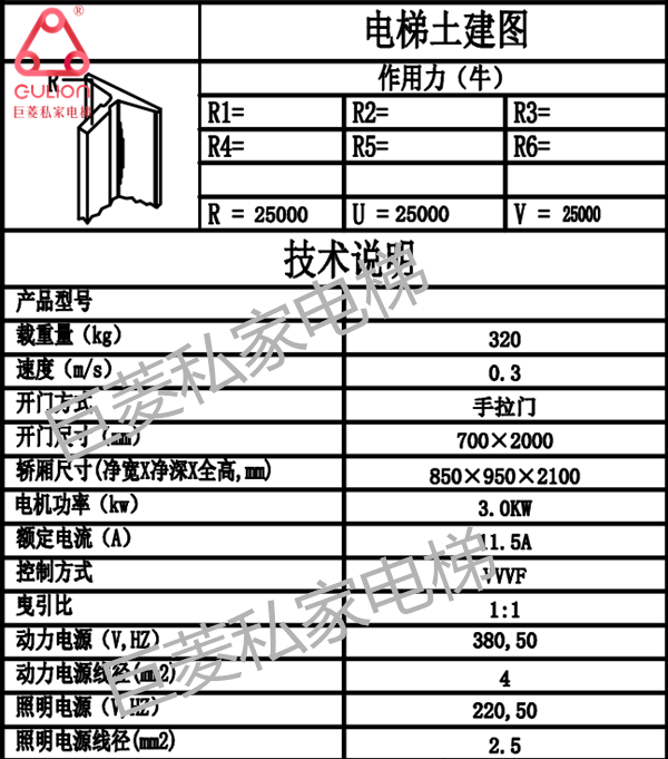 通過以上我們Gulion巨菱設(shè)計圖紙,不難看出凈尺寸1平方米左右的電梯井道,我們可以做到850mm*950mm*2100mm(寬*深*高)電梯轎廂內(nèi)部空間,這樣的尺寸一次可以乘坐3-4人,真正實現(xiàn)占地面積小大容量的家用小電梯的家居生活要求。