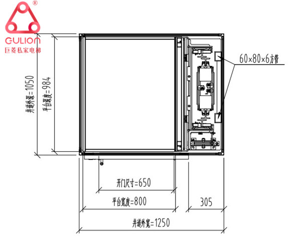 1250*1050mm超小尺寸 平臺式別墅電梯 平面設計圖