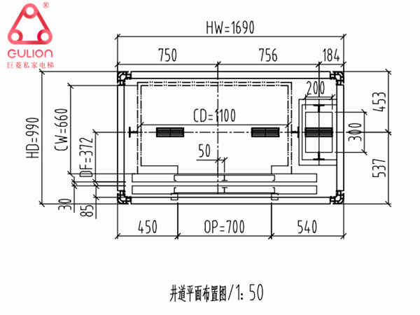 電梯安裝尺寸:1690*990mm(寬*深)
