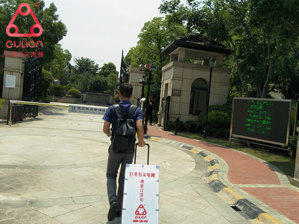 巨菱私家電梯技術(shù)人員 準(zhǔn)點(diǎn)到達(dá) 測(cè)量李總 南通別墅小電梯