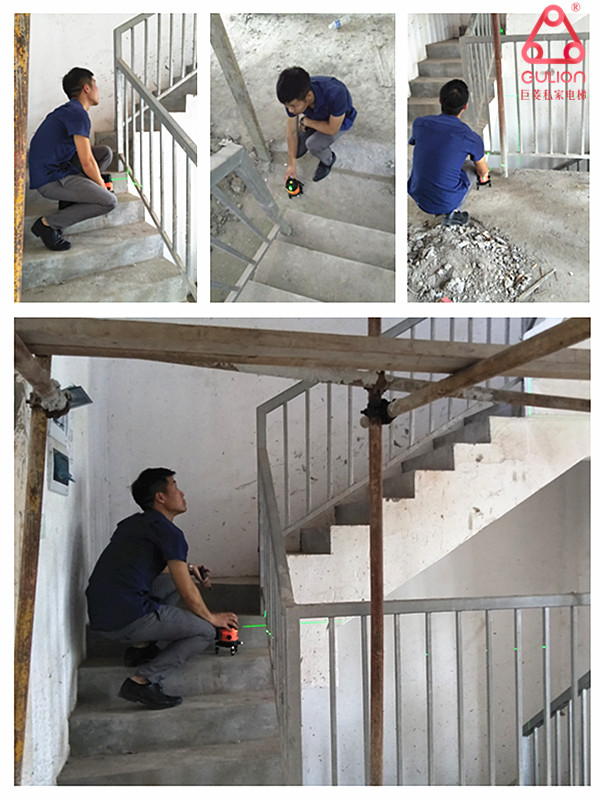 技術(shù)利用水平激光儀 更準(zhǔn)確測(cè)量 別墅小電梯安裝尺寸大小