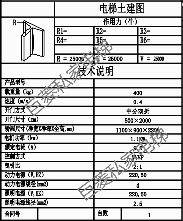4層4站4門(mén) 別墅電梯 勘測(cè)尺寸: