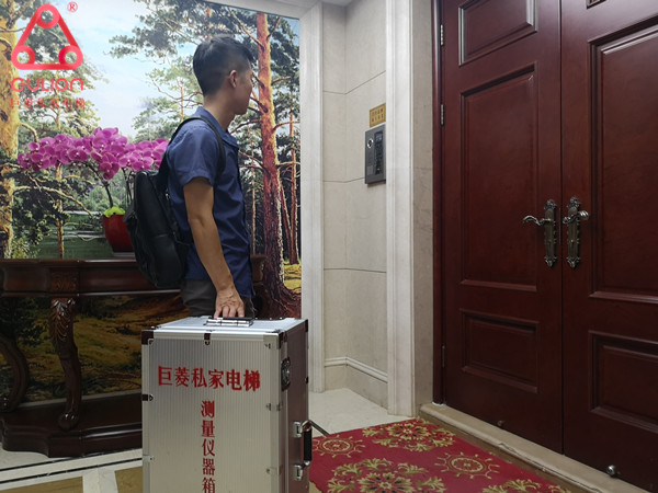技術(shù)工程人員 帶上專(zhuān)業(yè)的測(cè)量?jī)x器 勘測(cè)別墅電梯 合適的安裝位置