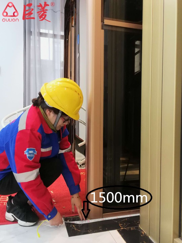 接下來,大家會考慮,如果安裝這樣一款的別墅電梯,我應該需要多大的尺寸才能滿足它的安裝條件呢?內部空間又是多大的,夠不夠用呢等等關于家用別墅電梯尺寸的問題。下面小編親自給大家實地測量了巨菱Gulion這臺家用別墅電梯幾個重要的安裝尺寸,如下: