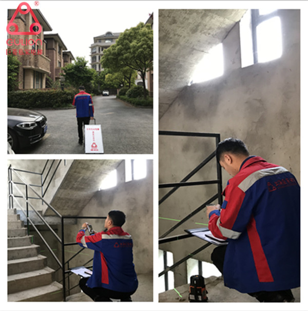 歐小姐的別墅就位于這樣高端的居住區(qū)內(nèi),今天我們受邀給歐小姐的別墅復(fù)核電梯井道尺寸。歐小姐別墅是一棟地下一層地面三層(-1F+3F)聯(lián)排別墅,準(zhǔn)備利用樓道空間做一個(gè)家用小電梯。通過(guò)現(xiàn)場(chǎng)勘測(cè)到的數(shù)據(jù)是電梯井道外尺寸1150mm*1150mm,這個(gè)空間也就1平方米左右,是相當(dāng)緊湊的。
