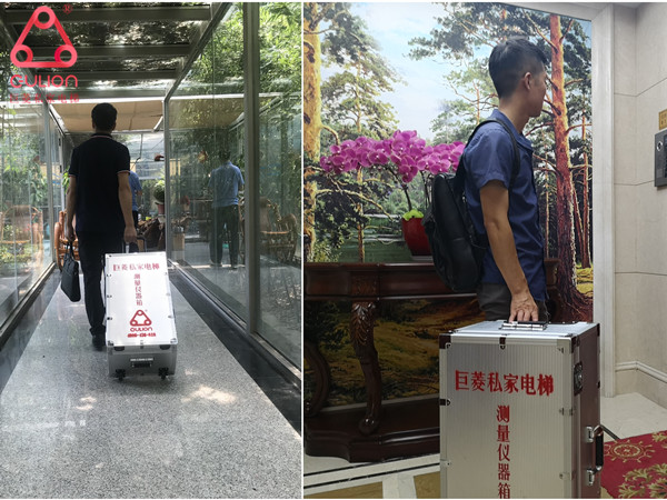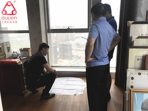 巨菱Gulion技術(shù)和銷售人員帶上我們專業(yè)測(cè)量?jī)x器 為蔣總常州別墅電梯 上門勘測(cè)尺寸服務(wù)