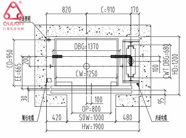 根據(jù)現(xiàn)場勘測數(shù)據(jù)進行整理分析,我們技術(shù)部給出一個詳細的家用電梯設(shè)計方案。采用Gulion巨菱GT800系列曳引式驅(qū)動家用電梯,這款驅(qū)動家用電梯可以很好的利用井道空間,增加轎廂面積,提高乘梯舒適度。最主要后期維護起來很方面,各項技術(shù)在國內(nèi)都很成熟,零部件好匹配,也是性價比最高一款家用別墅電梯。
