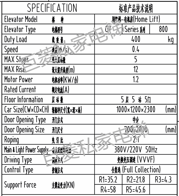 基于以上數(shù)據(jù),Gulion巨菱技術(shù)部給出一個詳細的5層5站5門家用電梯設(shè)計方案,具體如下: