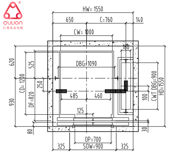 基于以上數(shù)據(jù),Gulion巨菱技術(shù)部給出一個詳細的5層5站5門別墅電梯設(shè)計方案,具體如下: