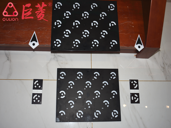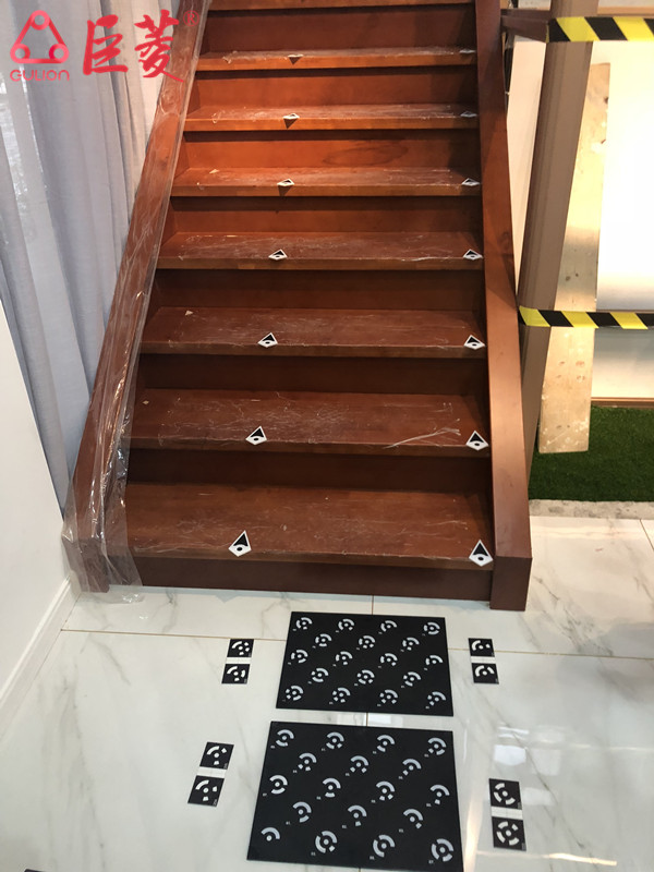 第三步:取2塊基地板,就是下圖放在地面上黑色方形的鋁塊。每個基地板都設(shè)有4個標(biāo)碼牌。這是一個由點及面的過程,為后期樓道升降椅、樓道扶手電梯立體三維圖成型是至關(guān)重要的。