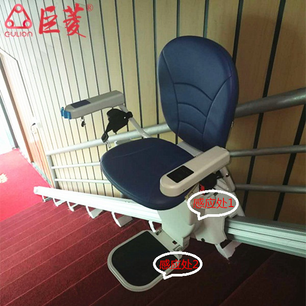 當(dāng)在運(yùn)行過程中碰到障礙物或者老人攜帶拐杖滑落時(shí),裝設(shè)在腳踏板邊緣及臺(tái)架底部的感應(yīng)器便能立即反應(yīng),將老年座椅電梯安全穩(wěn)定的停止。當(dāng)障礙物清除之后,座椅電梯立馬恢復(fù)正常的運(yùn)行狀態(tài)。